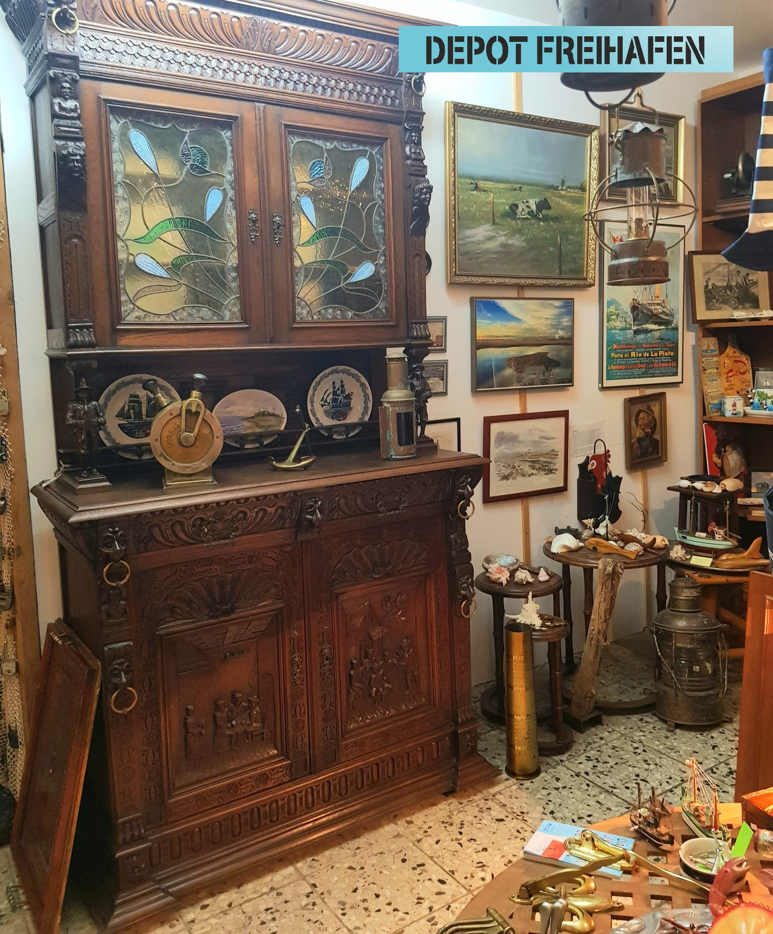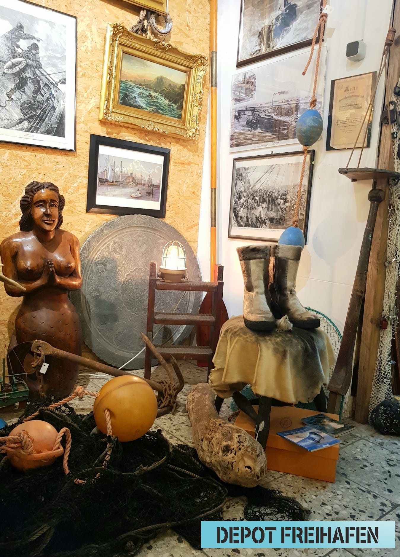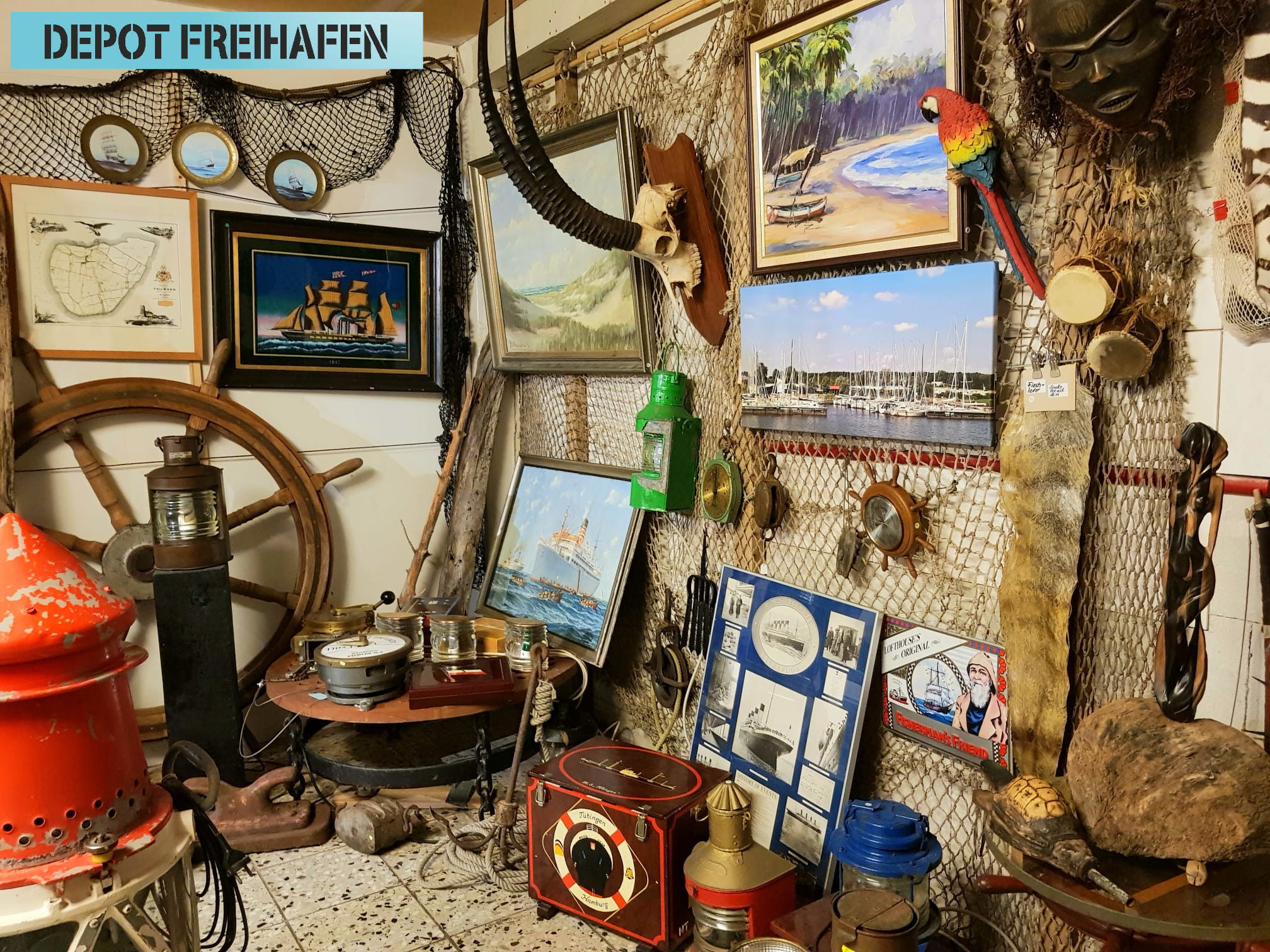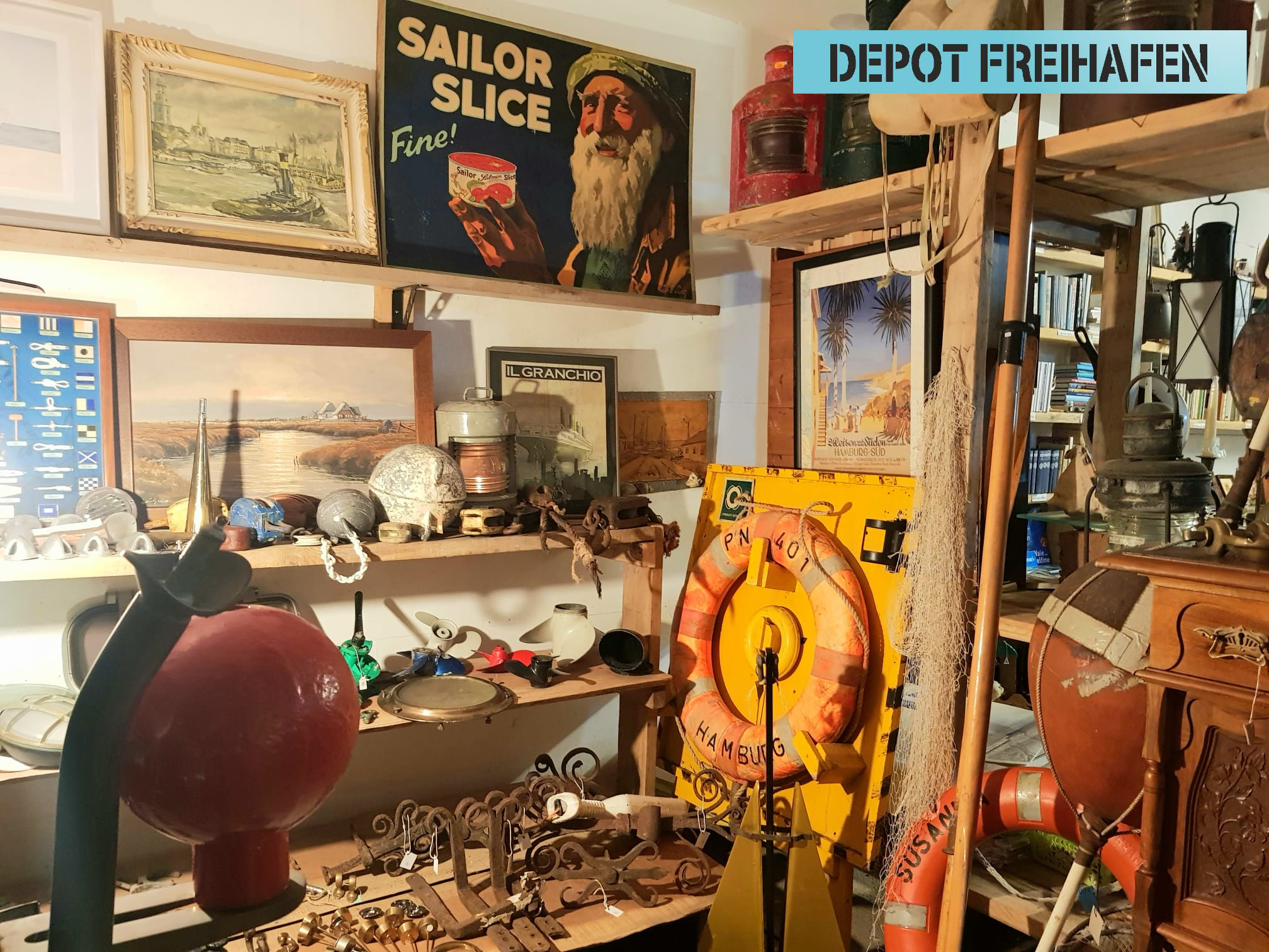 Unter diesem Motto präsentieren das Depot Freihafen und viele weitere Sammler, Handwerker und Künstler in der Ausstellung des WDF eine große Auswahl aus unserer ausgehenden Kultur: Nautiquitäten, Antiquitäten, maritime und regionale Originale, Kleinmöbel, Dekoratives und Nützliches. Die abgebildeten Objekte sind nur ein kleiner Teil und das Angebot ändert sich laufend.